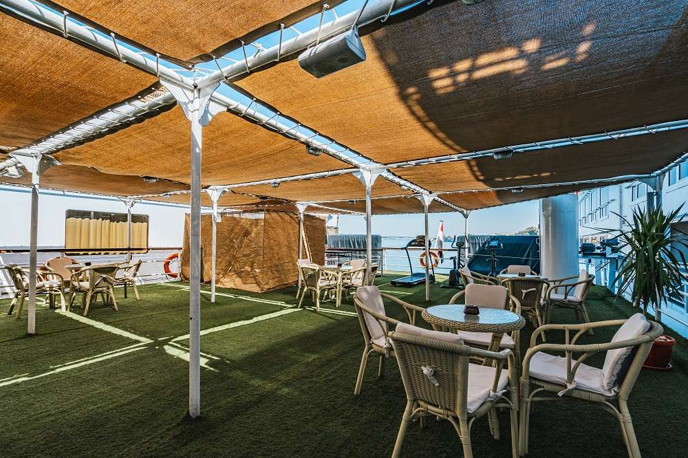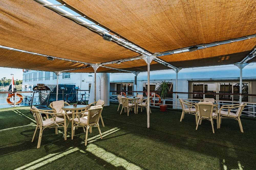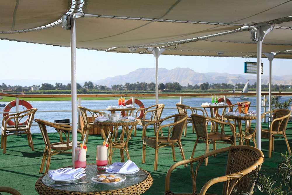 Формат отдыха на судне организован таким образом, чтобы вам не пришлось скучать даже в свободные от экскурсий дни. К вашим услугам на борту – открытая солнечная палуба с бассейном и барной стойкой. Здесь в любое время можно расслабиться, потягивая коктейль, и полюбоваться проплывающими мимо пейзажами: памятниками древней цивилизации на берегах главной реки Африки – Нила.