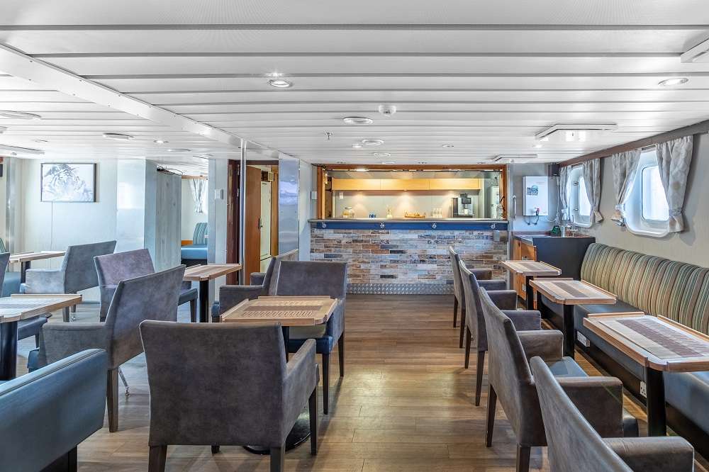 В ресторане со свободной рассадкой завтрак, обед и ужин проходят в формате «шведский стол». На борту работает кофе-станция со свежей выпечкой.