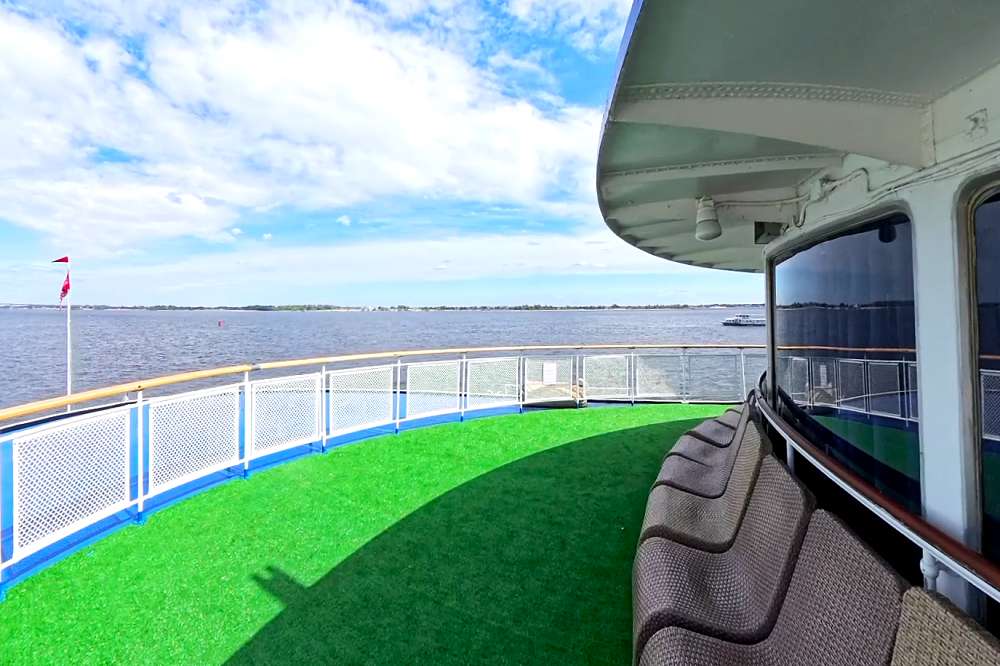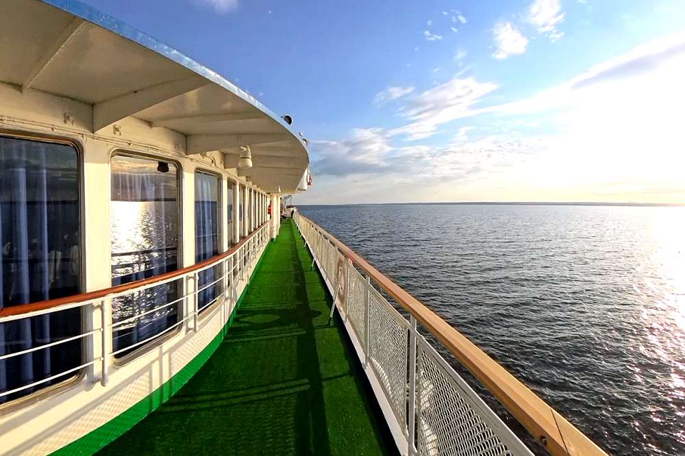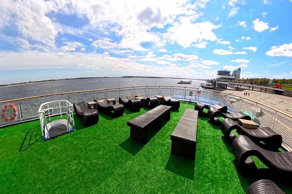 В круизе скучно не будет! На борту работает профессиональная арт-группа, которая сделает отдых ярким и запоминающимся. Вас ждут тематические мероприятия, мастер-классы по танцам и рукоделию, концерты, игры для взрослых и детей. Широкие прогулочные палубы, читальный салон с интерьерами из натурального дерева – все предназначено для спокойного и приятного отдыха. Для желающих позагорать, принять воздушные ванны или просто полюбоваться пейзажами – на верхней палубе расположен солярий.