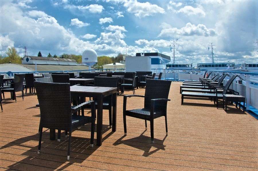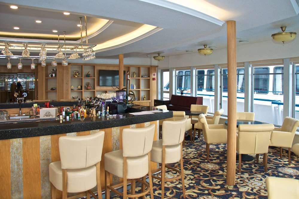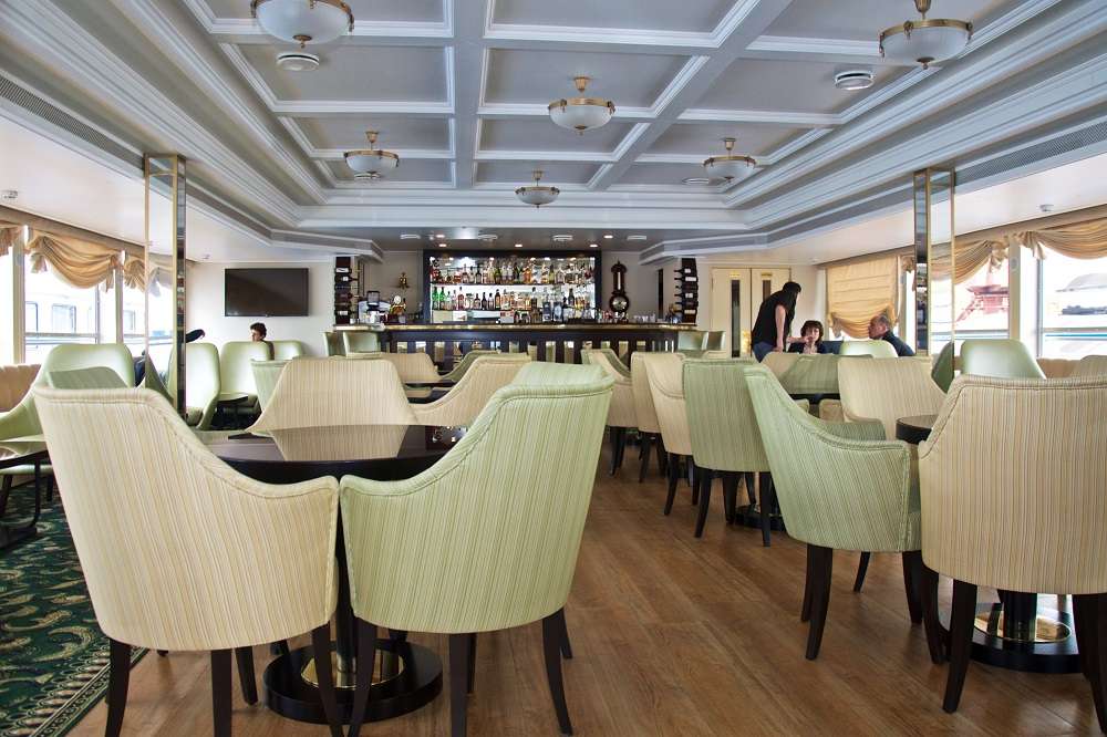 На борту теплохода ресторан, два бара, солнечная палуба с местами для загара, сувенирный магазин, библиотека, конференц-зал, ресепшен, салон красоты и кабинет врача. Теплоход долгие годы работавший только с иностранными туристами, порадует Вас уютными каютами и отличным сервисом.
