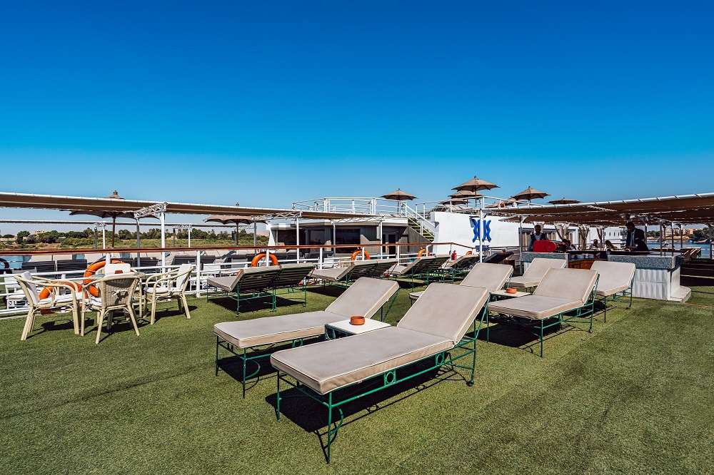 Формат отдыха на судне организован таким образом, чтобы вам не пришлось скучать даже в свободные от экскурсий дни. К вашим услугам на борту – открытая солнечная палуба с бассейном и барной стойкой. Здесь в любое время можно расслабиться, потягивая коктейль, и полюбоваться проплывающими мимо пейзажами: памятниками древней цивилизации на берегах главной реки Африки – Нила.