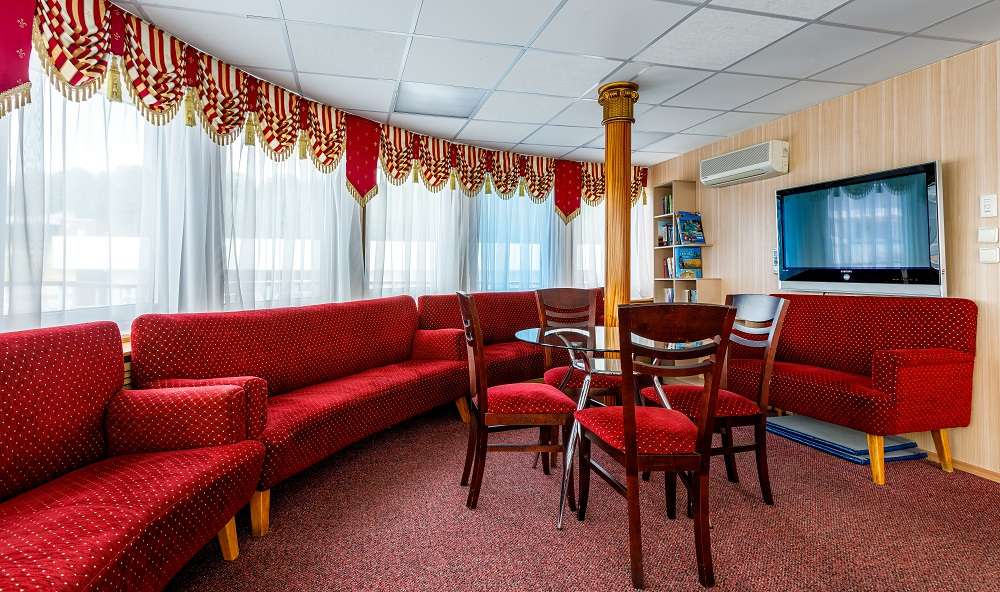 В обзорном лаундж-баре в определенные часы звучит живая музыка, а вечерами проводятся концертные программы. В мастер-салоне проводятся занятия спортом, йогой и мастер-классы. На теплоходе  вас ждет не только разнообразный, но и полезный отдых. На палубе стоят тренажеры, на которых вы можете позаниматься в любое время.