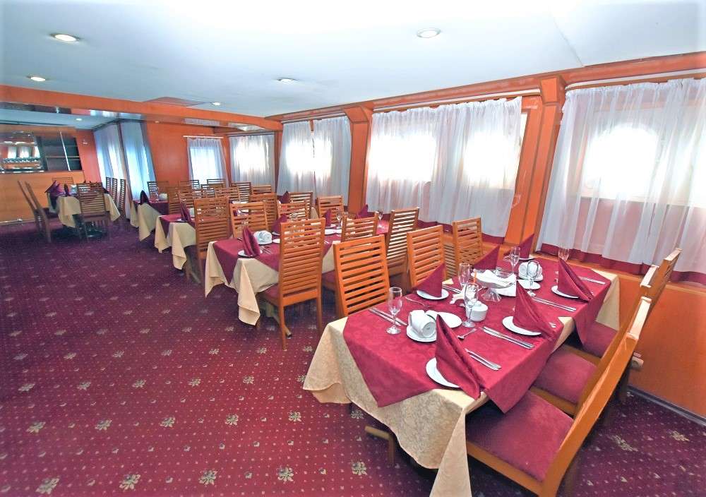 Трёхразовое питание организовано в 2-х ресторанах. В баре предоставлен ассортимент закусок, алкогольных и безалкогольных напитков.