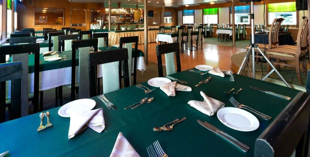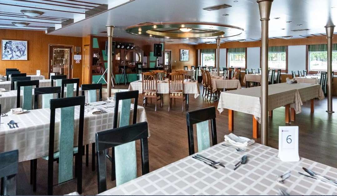 - обед — буфет («шведский стол») фиксированная рассадка, в отдельные дни круиза возможна замена на обед с выбором блюд;