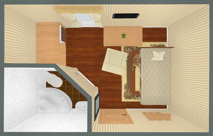 - Возможно размещение третьего человека на дополнительном месте – спальное место верхнего расположения.