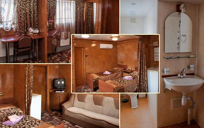 Душ, туалет, умывальник (гор/хол вода), раздельные спальные места, кондиционер, холодильник, ТВ.