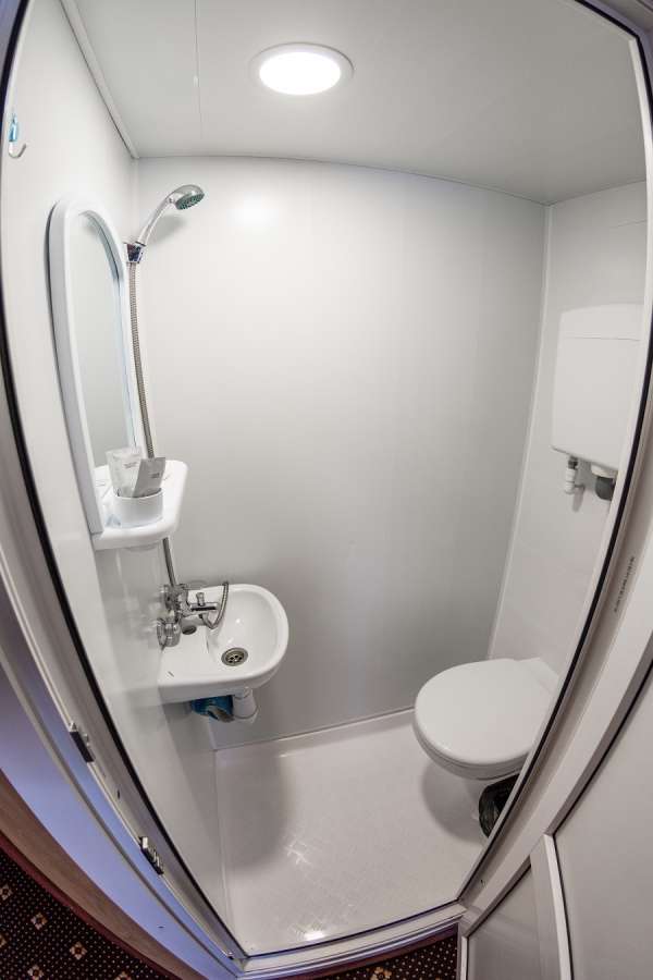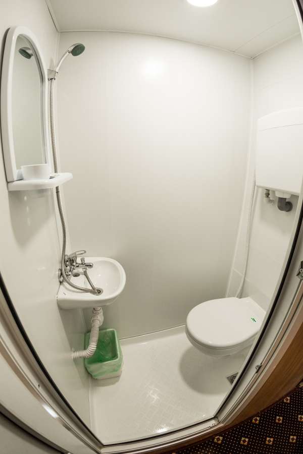 Душ, туалет, умывальник (гор/хол вода), раздельные спальные места, возможность размещения дополнительного туриста, увеличенная площадь каюты, холодильник, ТВ.