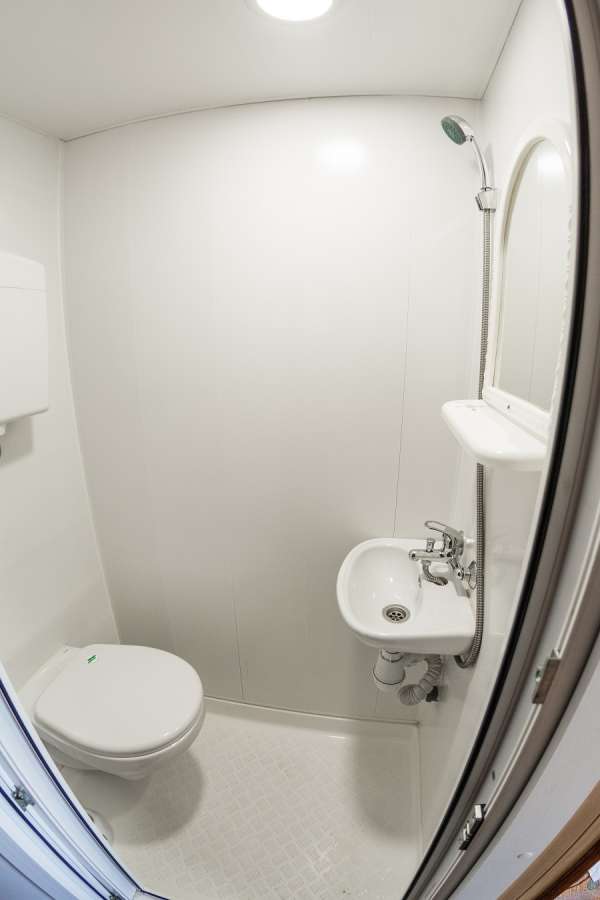 Душ, туалет, умывальник (гор/хол вода), спальное место, кондиционер, холодильник, ТВ.