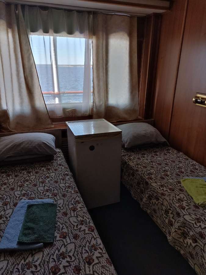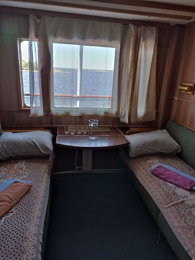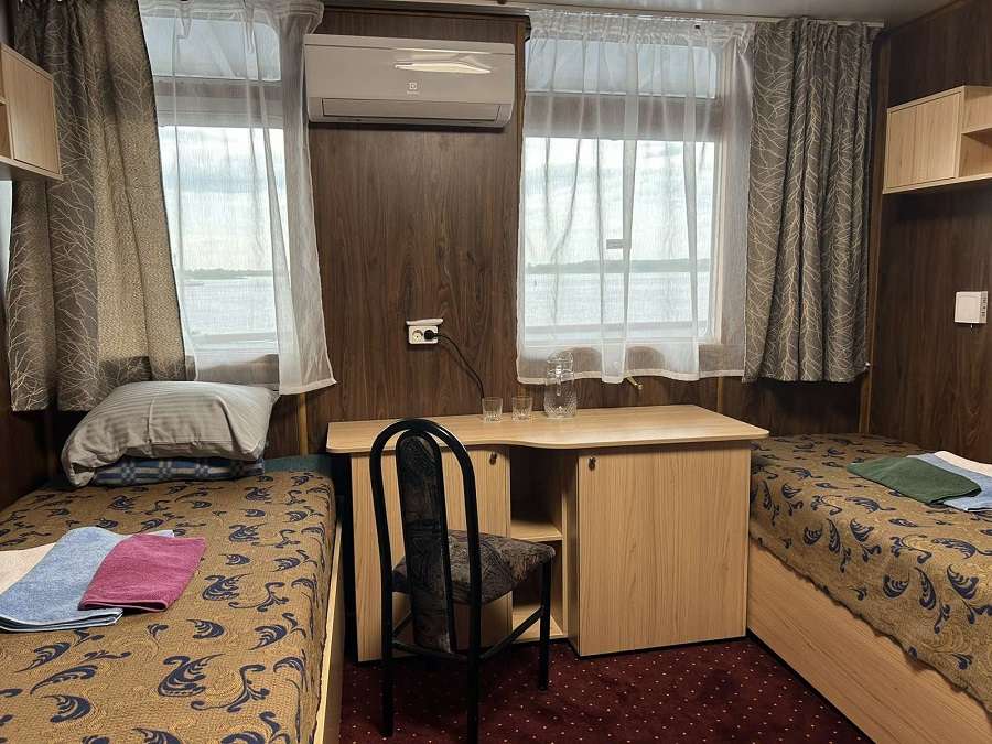 К услугам туристов одноместные и двухместные каюты с частичными (раковина) или со всеми удобствами (душ, туалет), стандартной и увеличенной площади, а также каюты категорий «Люкс» и «Полулюкс». В некоторых каютах увеличенной площади с удобствами возможно размещение от 2-х до 4 человек. Каюты категорий «Люкс» и «Полулюкс» оснащены кондиционером. Также в каютах категорий «Люкс» установлены телевизор и DVD. Для любителей соло-путешествий на борту есть 12 одноместных кают на шлюпочной палубе.