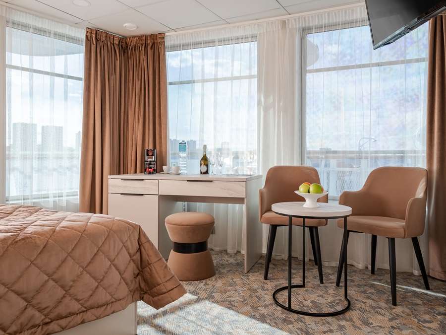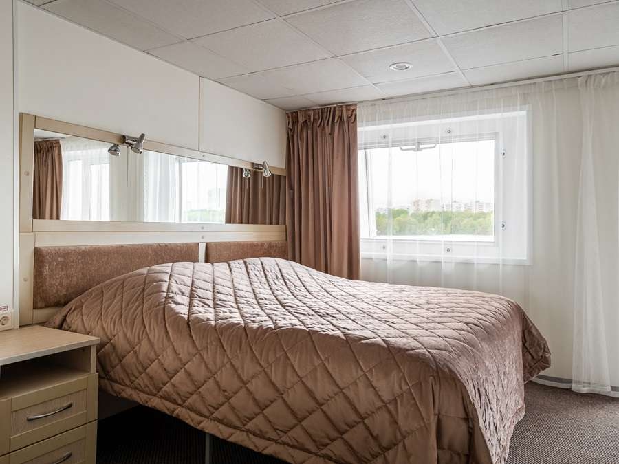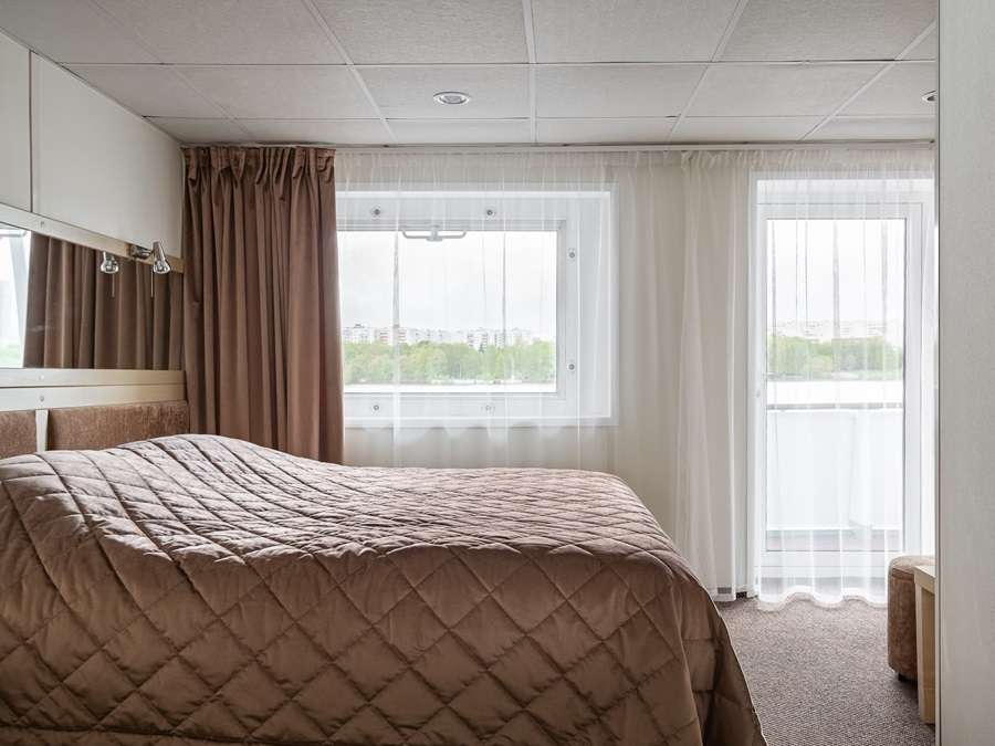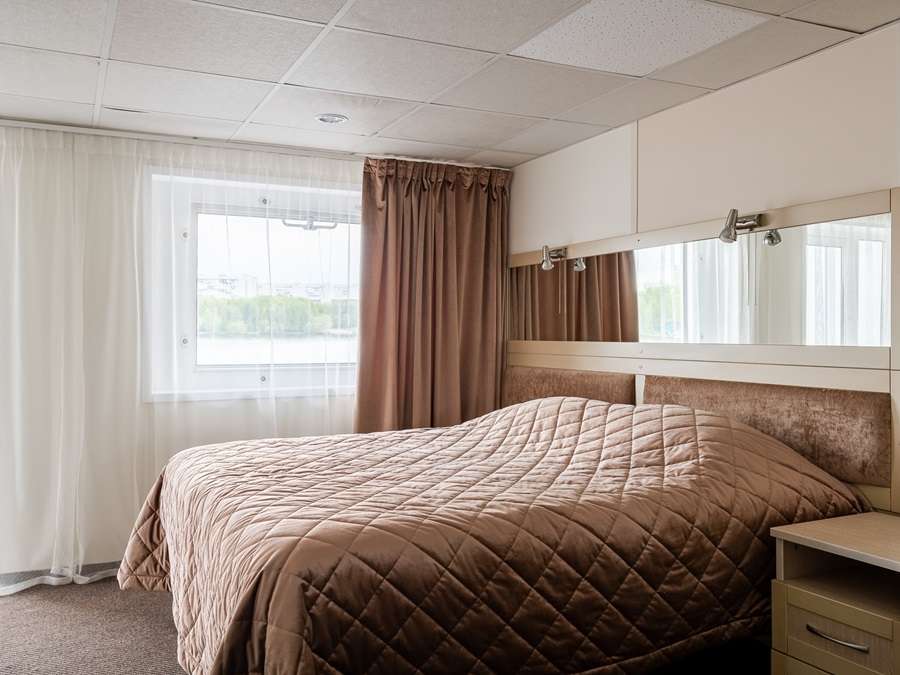 Двухместная каюта с панорамными окнами увеличенной площади со всеми удобствами, расположенная на средней палубе.