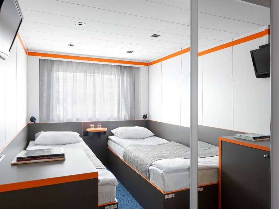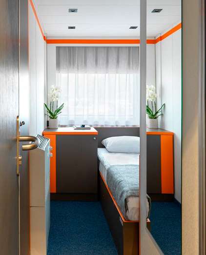 Возможна продажа каюты в двухместном одноярусном размещении (по стоимости 2-местной каюты).