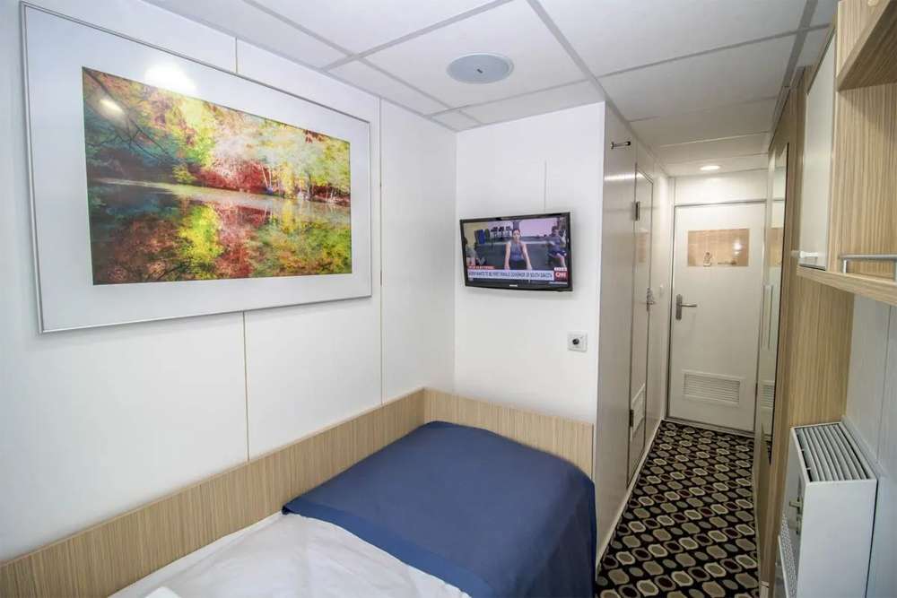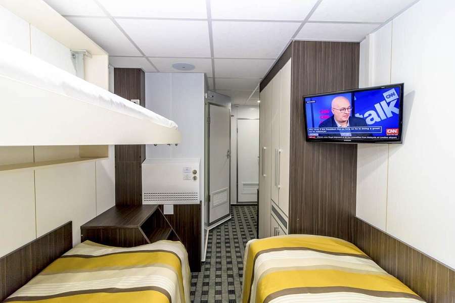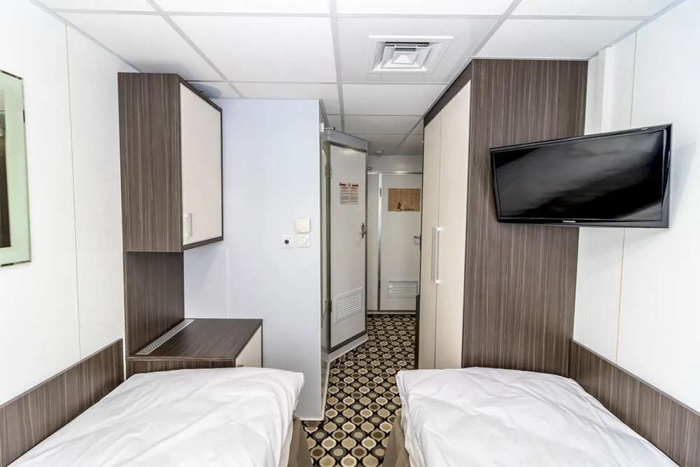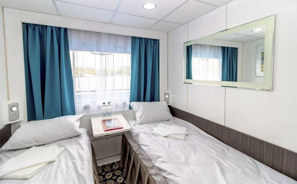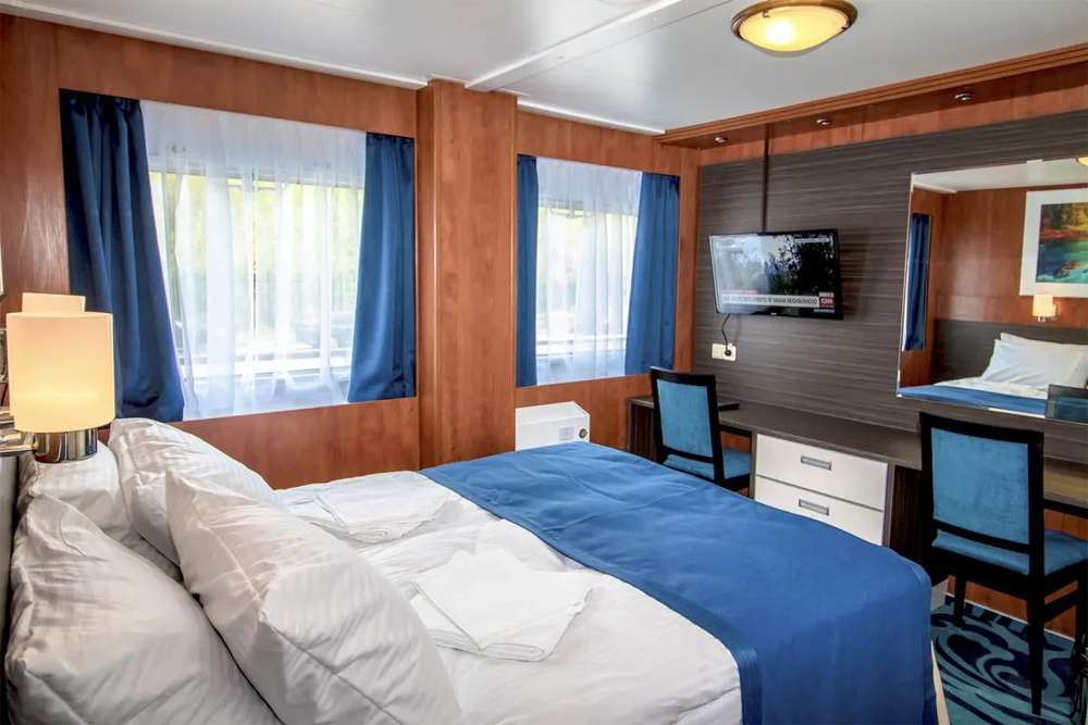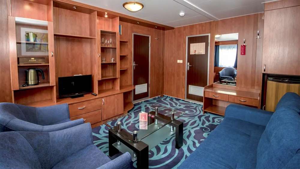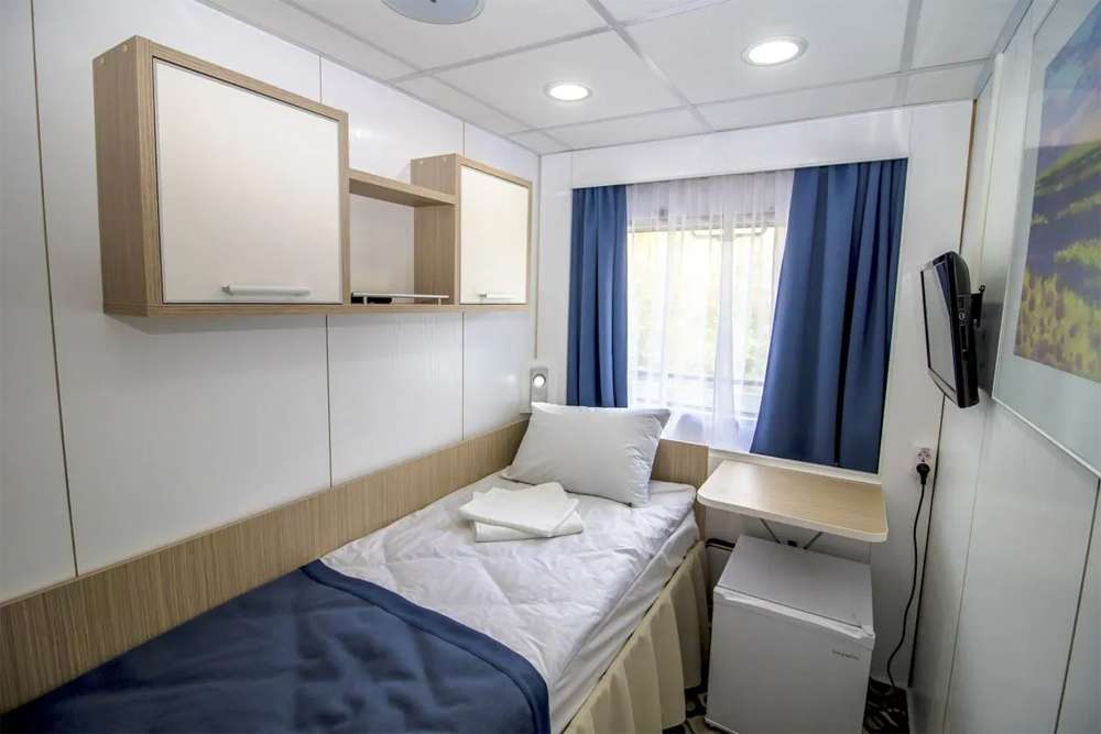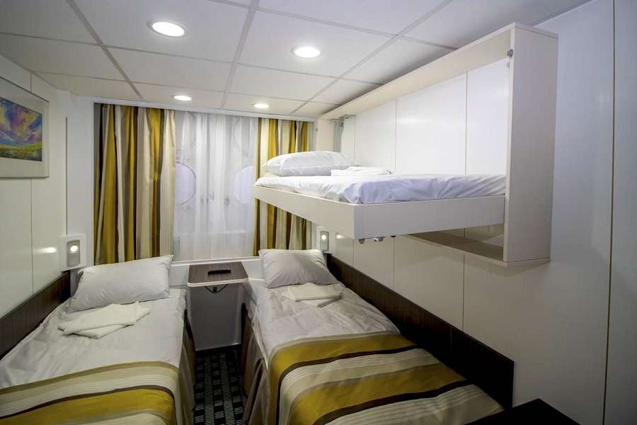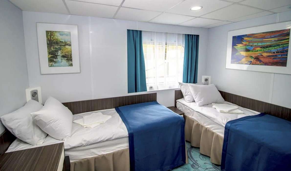 Для размещения туристов представлены: 6 кают класса «Люкс», 20 одноместных кают, 40 кают класса «Делюкс», 40 двухместных одноярусных кают, 10 трехместных двухъярусных кают. Во всех каютах: шкаф для одежды, радио, телевизор, холодильник, сейф, кондиционер, душ, санузел, обзорное окно (в каютах нижней палубы — иллюминатор).