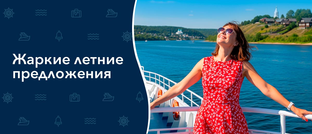 Июль — пик сезона! Самое жаркое время года — время путешествовать и отдыхать. Загорать на солнечной палубе, пока с реки веет приятный освежающий ветерок. Наслаждаться отличной погодой на экскурсиях. Покупать во время остановок спелые сочные ягоды и лакомиться ими на борту, пока мимо проплывают пейзажи.
