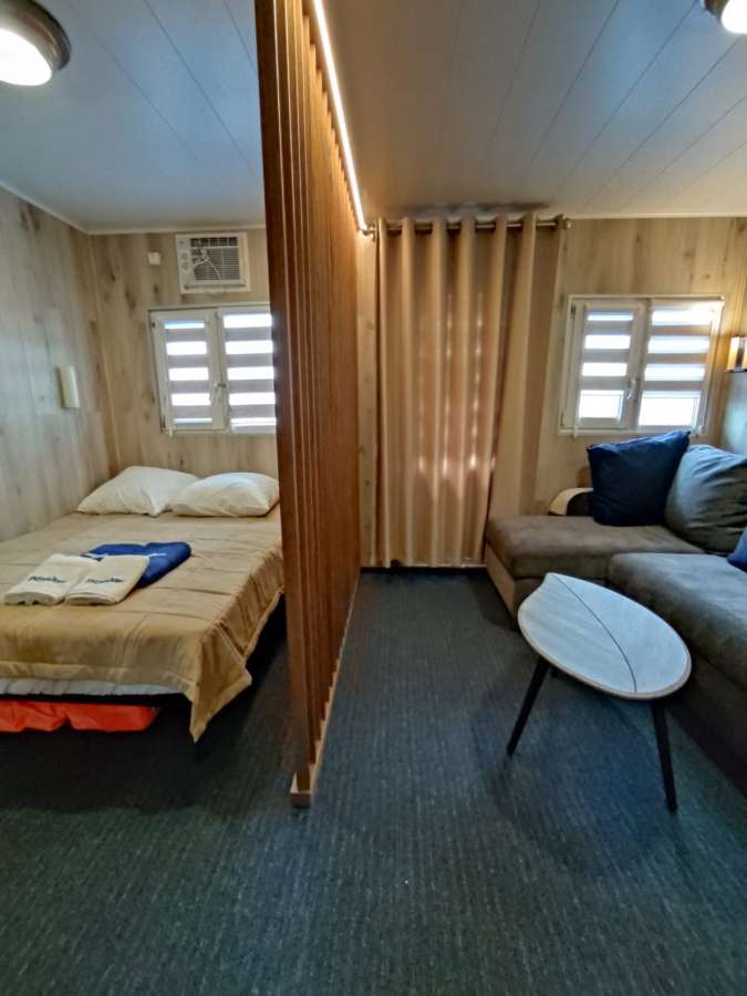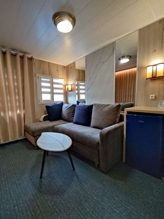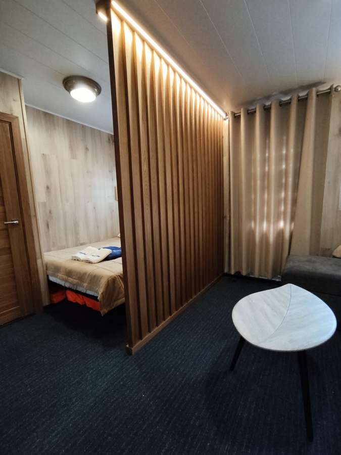 В каюте: стильная гостиная с доп.спальным местом (диван), уютная спальня с двуспальной кроватью, просторный санблок (душ, туалет, умывальник), фен, кондиционер, холодильник, электророзетка на 220V.