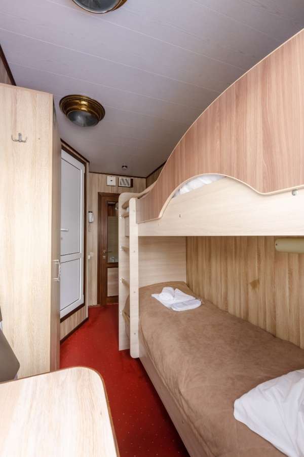 Двухместное размещение в четырехместной двухъярусной каюте на нижней палубе.