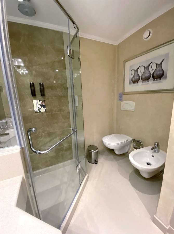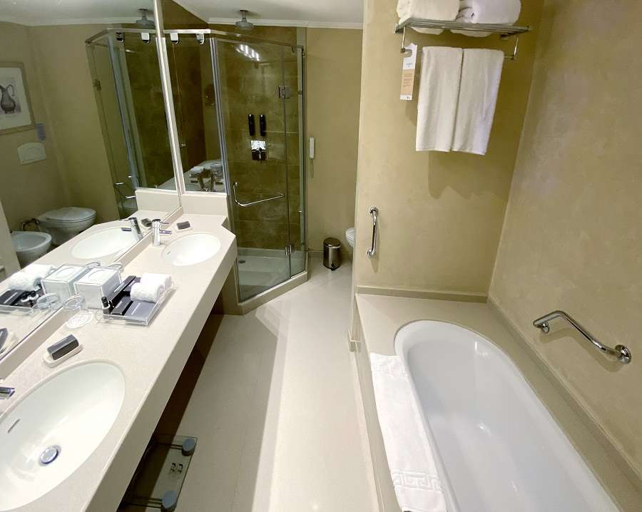 В каютах категорий «Гранд сьют» и «Роял сьют» гостям дополнительно предоставляются халат и тапочки, а ванная комната кают «Роял сьют» оборудована джакузи.