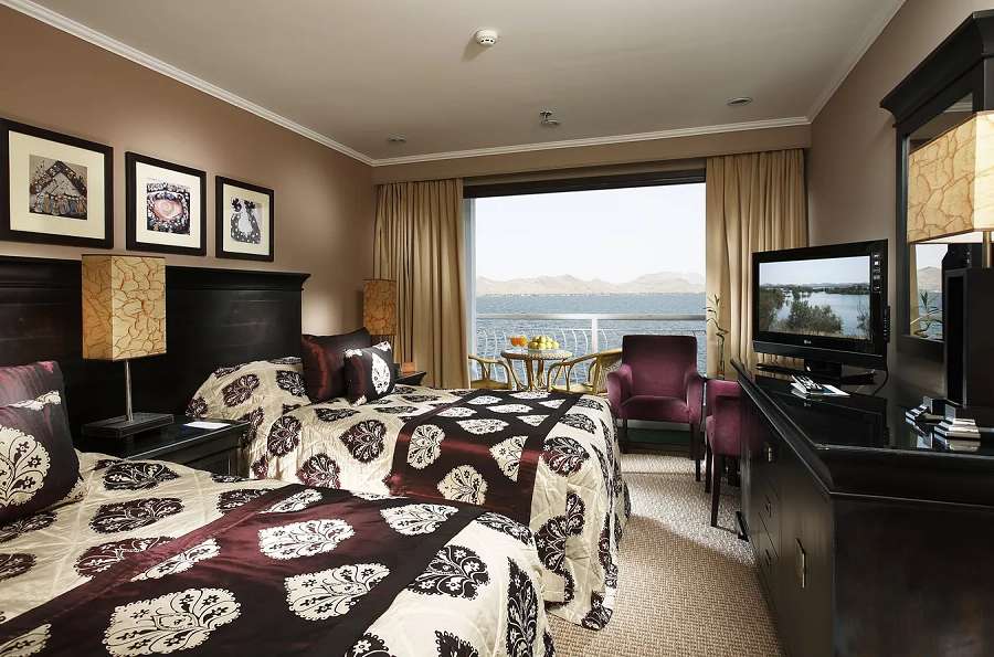 Omar El Khayam – большой круизный теплоход класса «Люкс». Безупречный дизайн, великолепие востока в каждой детали и изысканная кухня сделают ваше путешествие незабываемым. Все каюты оборудованы индивидуальными балконами, с которых можно наблюдать всё величие самой главной реки Африки. Это один из двух теплоходов, на котором проходит «Гранд круиз по Нилу».