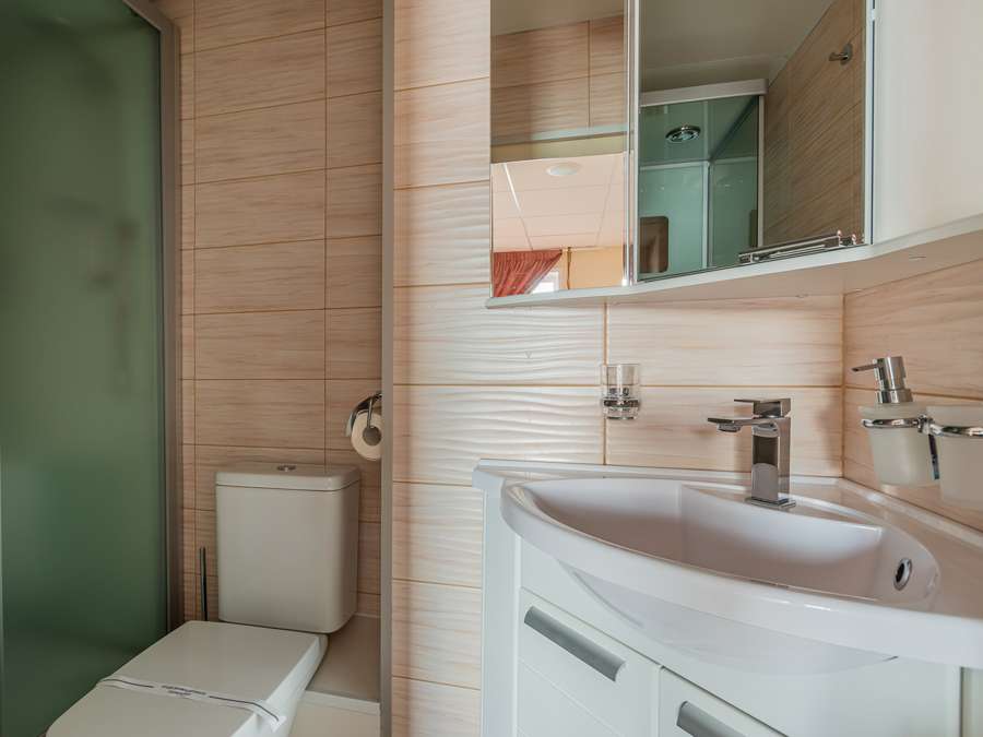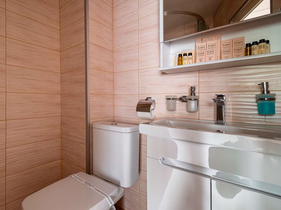 А2 комфорт К категории А2 комфорт относятся каюты: 337–362. Двухместная каюта со всеми удобствами, расположенная на средней палубе. Площадь каюты ≈ 10 м². Изображение кают 337–348 является рендером и носит ознакомительный характер. В навигации 2026 каюты 325–336 переходят в категорию А2 комфорт. Изображение кают является рендером и носит ознакомительный характер.