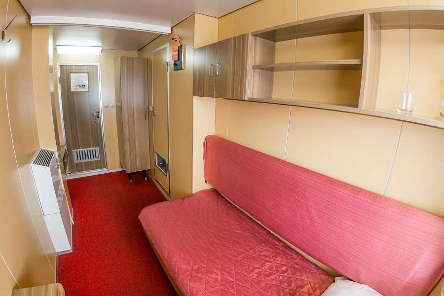 А1 К категории А1 относятся каюты: 437–446. Одноместная каюта со всеми удобствами, расположенная на шлюпочной палубе. Площадь каюты от 6,2 до 7,4 м².