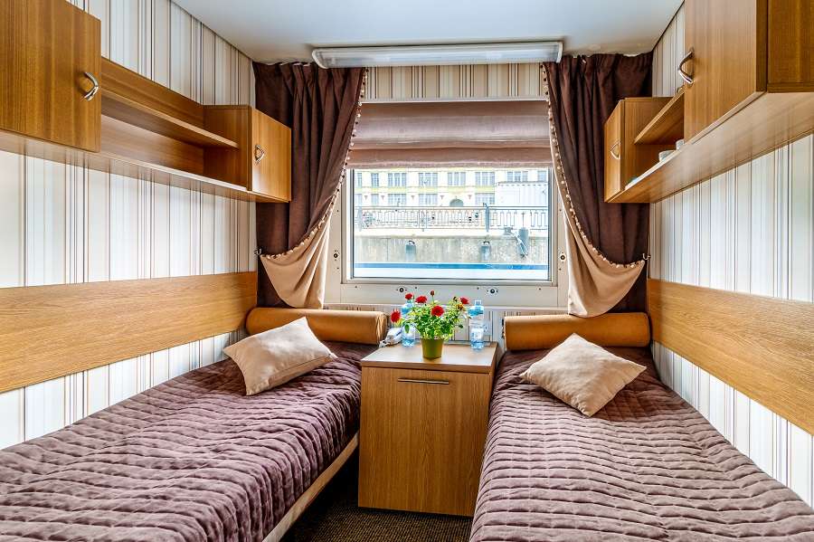 Каютный фонд теплохода состоит из кают категорий «Комфорт» и «Полулюкс».