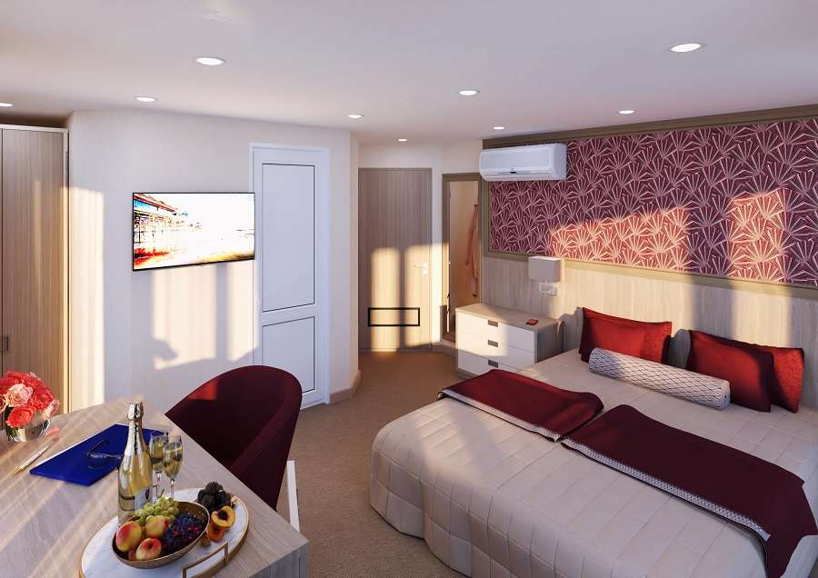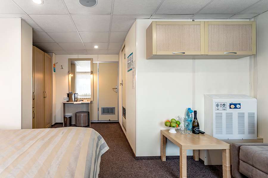 А2 комфорт (шлюпочная палуба) К категории А2 комфорт (шлюпочная палуба) относятся каюты: 401, 403, 404. Двухместная каюта со всеми удобствами, расположенная на шлюпочной палубе. Каюта с эргономичным дизайном и современной отделкой. Площадь каюты от 9,5 до 9,8 м².