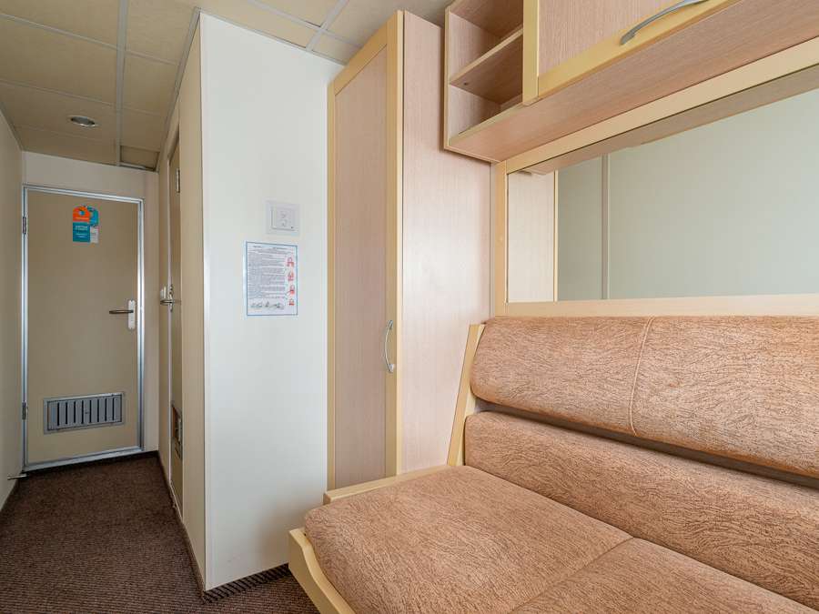 А1 комфорт К категории А1 комфорт относятся каюты: 309, 310, 343, 344, 419–424, 426. Одноместная каюта со всеми удобствами, расположенная на средней и шлюпочной палубах. Каюта с эргономичным дизайном и современной отделкой. Площадь каюты от 5,3 до 7,3 м².