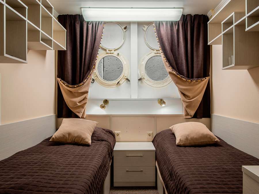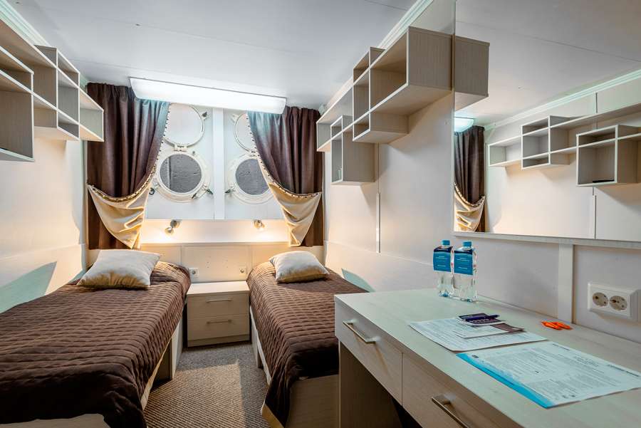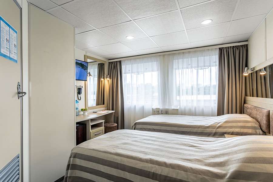 Полулюкс Б К категории Полулюкс Б относятся каюты: 301–308, 345–352. Двухместная каюта увеличенной площади со всеми удобствами, расположенная на средней палубе. Площадь каюты от 12,8 до 14,9 м².