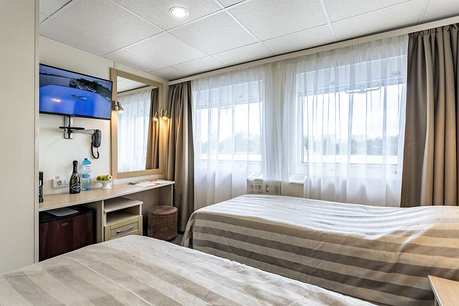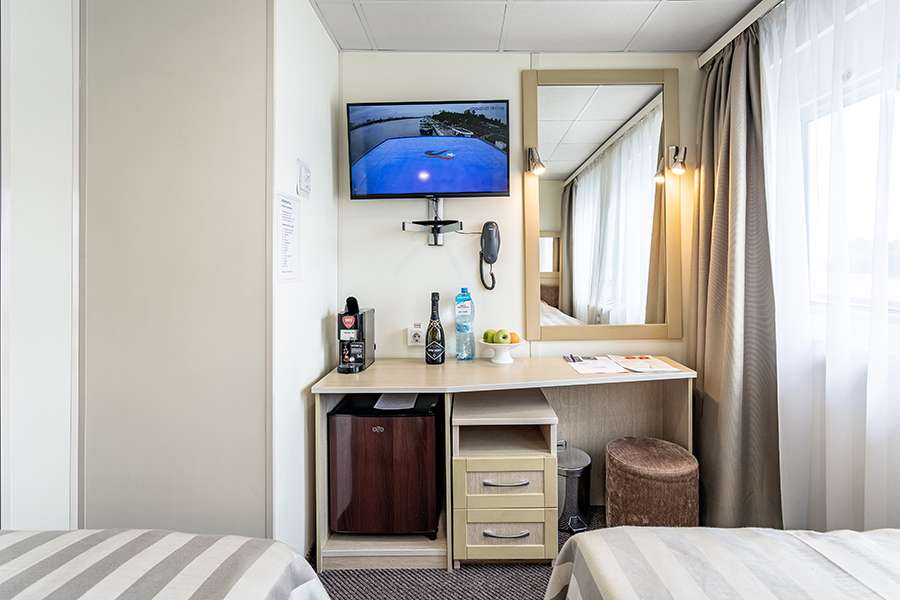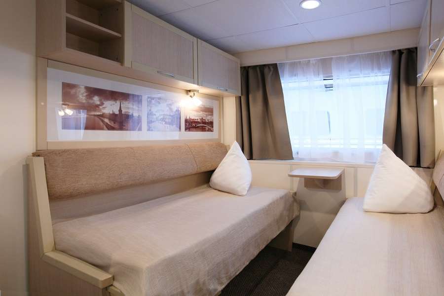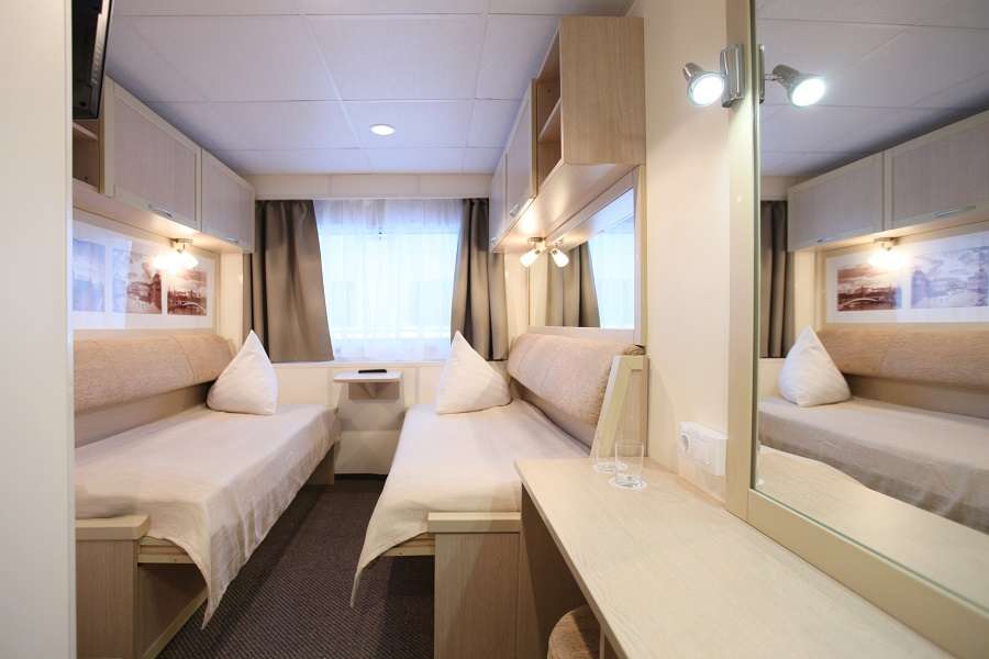 А2 комфорт (главная палуба) К категории А2 комфорт (главная палуба) относятся каюты: 201–236. Двухместная каюта со всеми удобствами, расположенная на главной палубе. Каюта с эргономичным дизайном и современной отделкой. Площадь каюты ≈ 8,4 м².