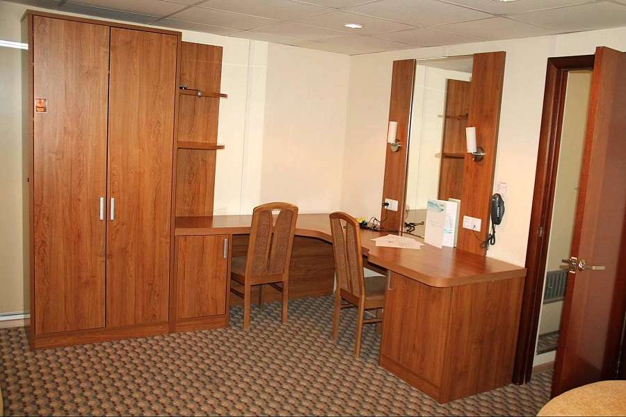 Делюкс+ (средняя палуба) К категории Делюкс+ относятся каюты: 315–336. Двухместная каюта со всеми удобствами, расположенная на средней палубе. Площадь каюты ≈ 18,5 м². Размер кровати – 160х200 см. Доступ к Wi-Fi предоставляется с ограниче