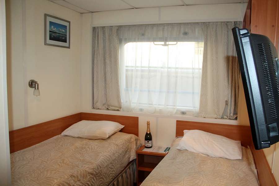 Комфорт (главная палуба) К категории Комфорт относятся каюты: 201–232. Двухместная каюта со всеми удобствами, расположенная на главной палубе. Площадь каюты ≈ 8,5 м². Доступ к Wi-Fi предоставляется с ограничением трафика. Кровати не сдвиг