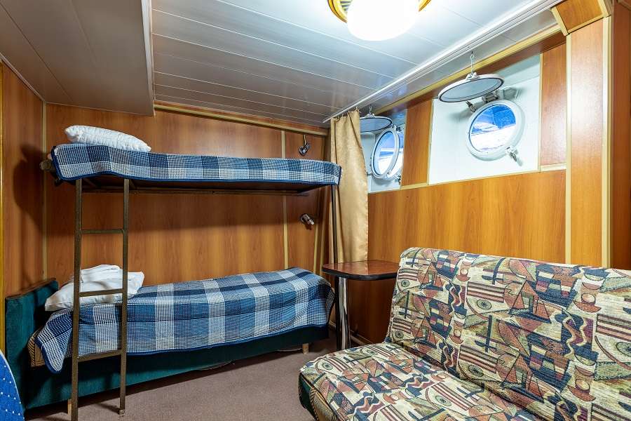 А2Н относятся каюты: 003–007. Двухместная каюта со всеми удобствами, расположенная на нижней палубе. Возможно размещение третьего человека на дополнительном месте – полка верхнего расположения. В каюте: два односпальных дивана, полка верхнего расположения, ванная комната (раковина, душ, туалет), шкаф для одежды, холодильник, фен, стол, четыре иллюминатора.