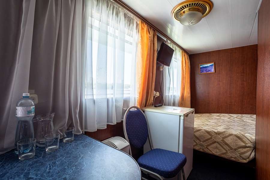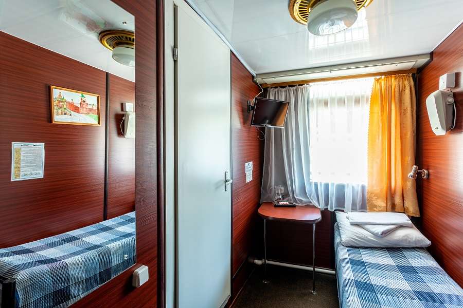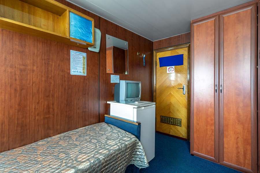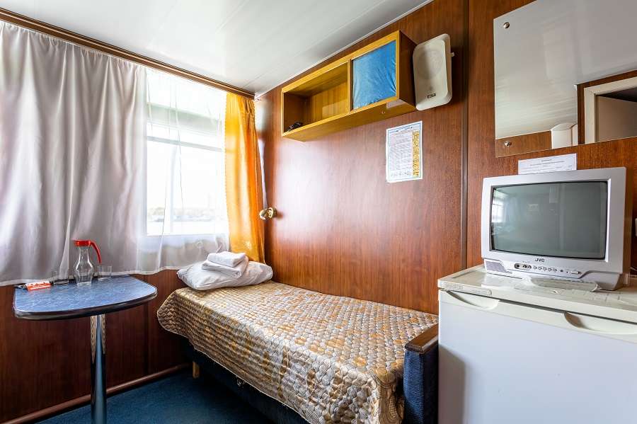 А1 относятся каюты: 200, 201, 224, 226, 227, 300. Одноместная каюта со всеми удобствами, расположенная на средней и шлюпочной палубах. Изображение каюты 200 является рендером и носит ознакомительный характер. В каюте: односпальная кровать, ванная комната (раковина, душ, туалет), шкаф для одежды, стол, холодильник, фен, телевизор, общая система вентиляции, обзорные окна.
