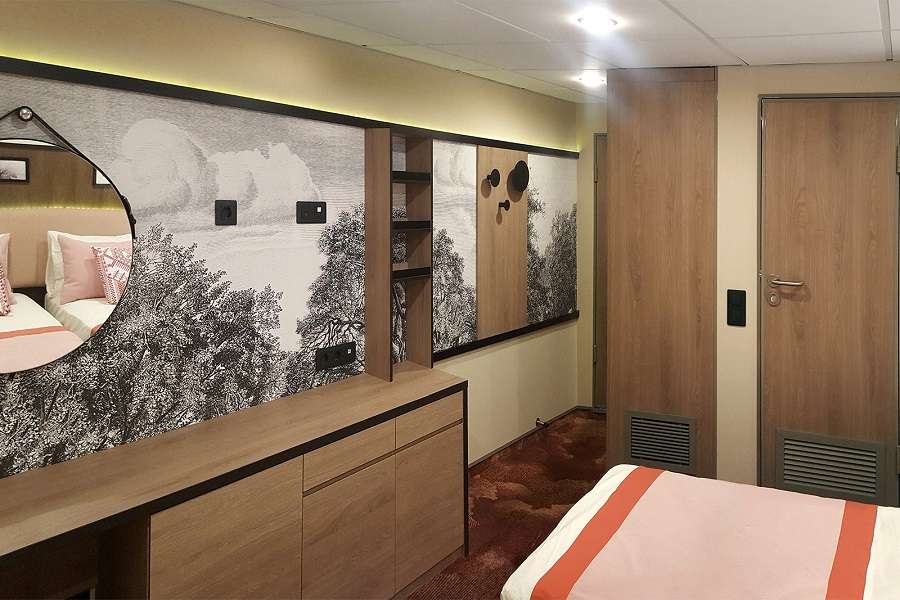 Двухместная каюта со всеми удобствами, расположенная на средней палубе.