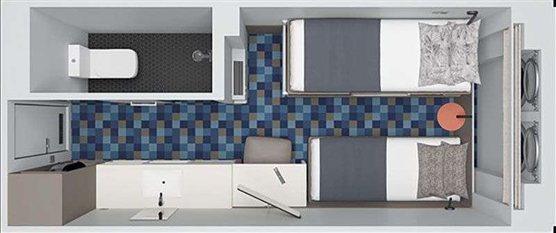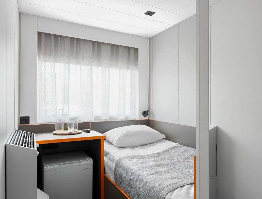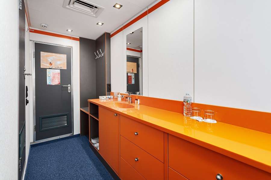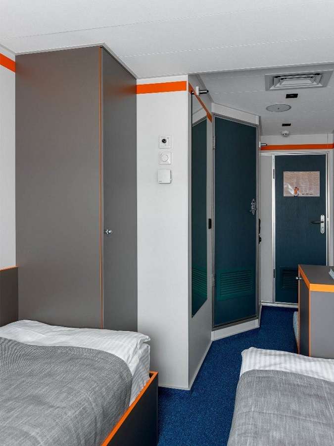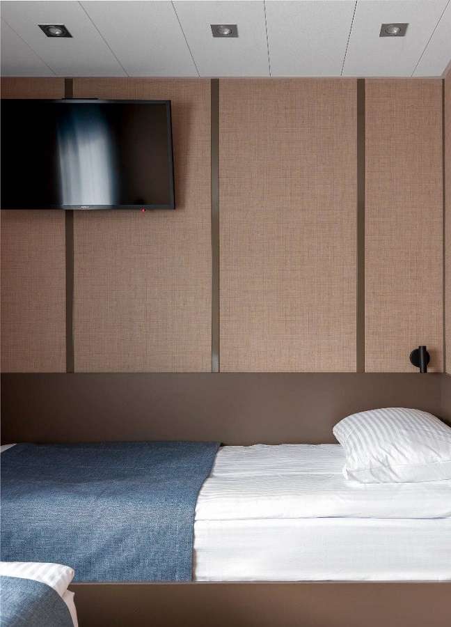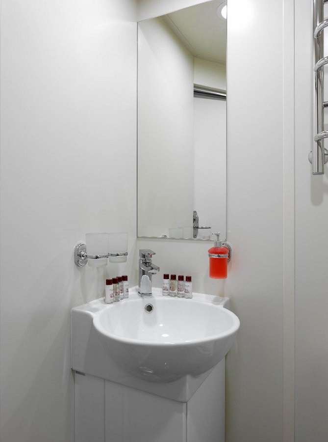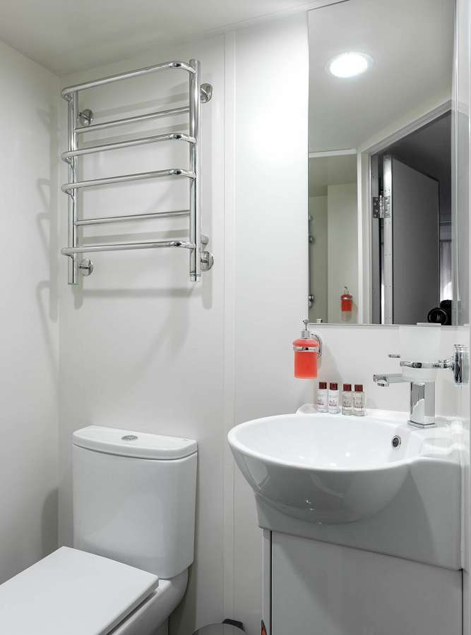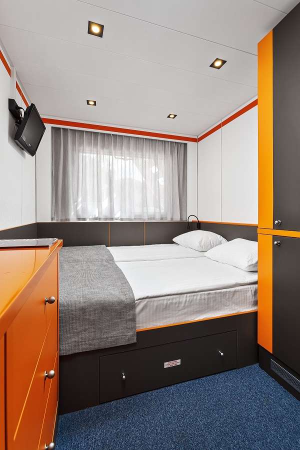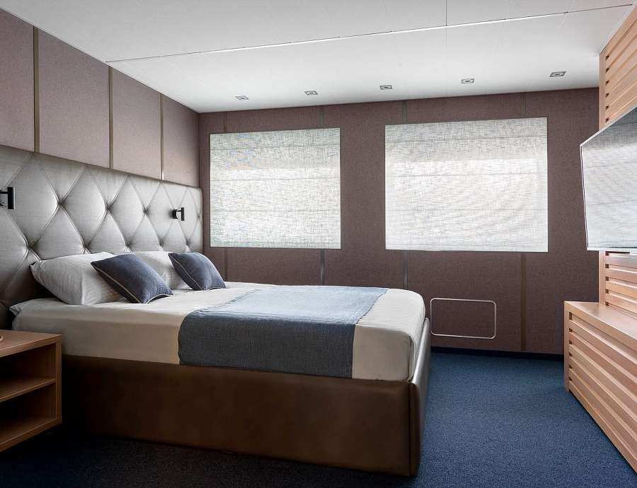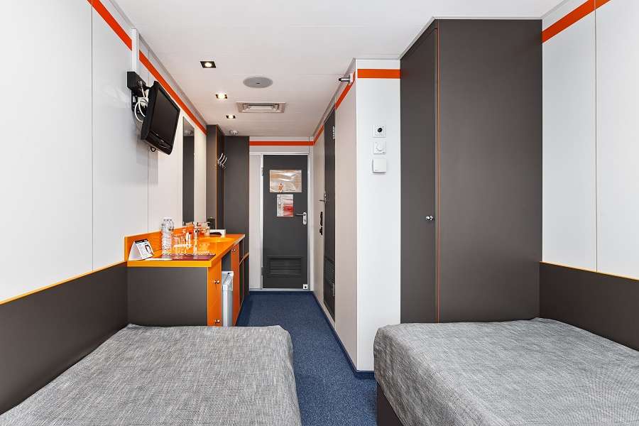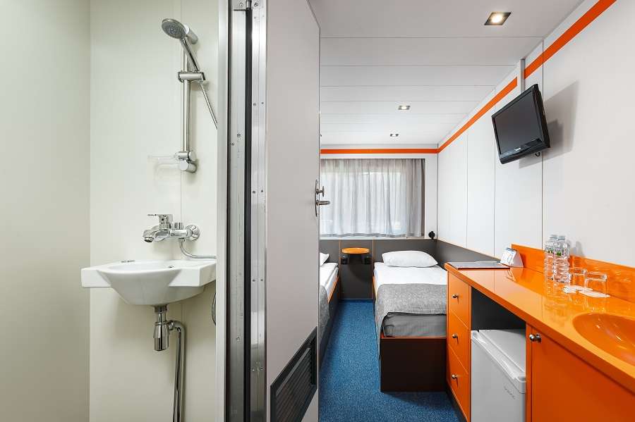 Для размещения туристов на борту представлены каюты разных категорий: «Люкс», «Делюкс», одноместные каюты, двухместные одноярусные каюты, трехместные двухъярусные каюты. Во всех каютах: холодильник, мини-бар, сейф, телевизор, шкаф для одежды, радио, кондиционер, душ, санузел, фен, обзорное окно (или иллюминатор