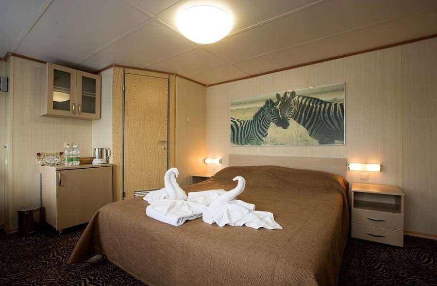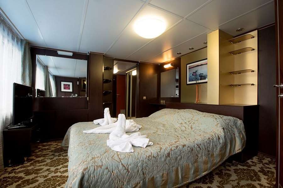 Полулюкс. Каюта располагается на шлюпочной палубе. Просторная однокомнатная каюта с удобствами (душ, санузел, кондиционер) рассчитана на размещение двух человек. В каюте: две кровати, кровати не сдвигаются, шкаф для одежды, стол-бюро, кресло, телевизор, холодильник, радио, сейф, фен, два обзорных окна, электророзетка на 220V.