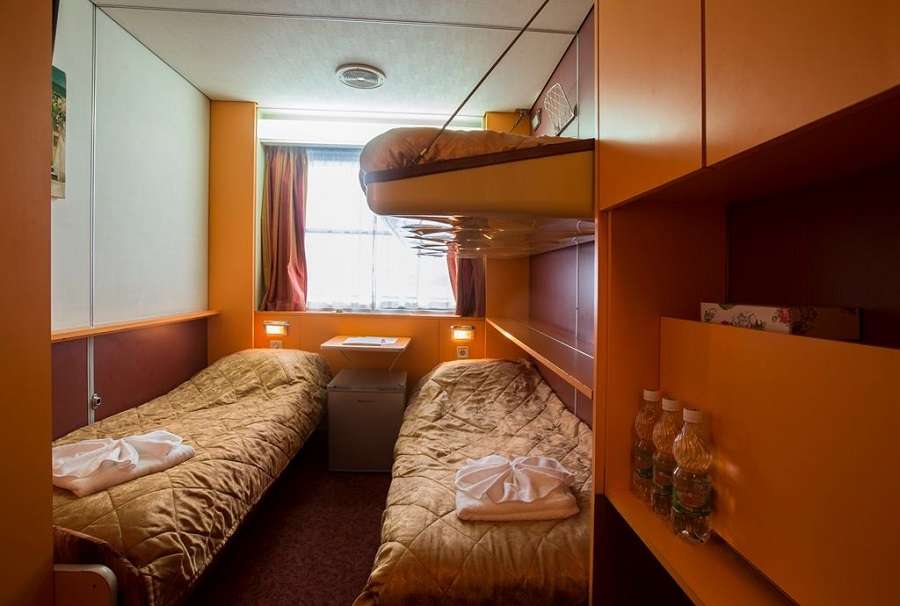 2-местная каюта (2-местное размещение в 3-местной двухъярусной каюте) на главной палубе. В каюте: три спальных места (два внизу и одно — вторым ярусом), шкаф для одежды, радио, центральный кондиционер, холодильник, телевизор, душ, санузел, фен, сейф, обзорное окно (после переоборудования на в 2020 году не открывается согласно технике безопасности и требованиям морского регистра), электророзетка на 220V.