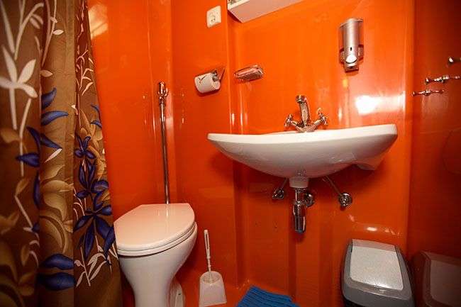 Во всех каютах: шкаф для одежды, радио, кондиционер, холодильник, телевизор, душ, санузел, фен, сейф, обзорное окно, электророзетка 220V.