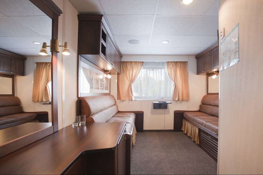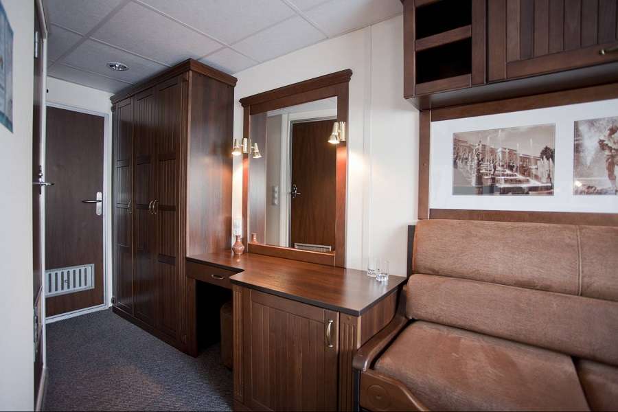 Теплоход рассчитан на прием 208 пассажиров. Все каюты (а их на борту 102) являются внешними и оборудованы открывающимися окнами (кроме кают на нижней палубе), при этом больше трети кают относятся к категории «Люкс». Также все каюты оснащены системой индивидуального климат-контроля, радио, телевизором, сейфом, встроенным платяным шкафом, а в каютах класса «Стандарт премиум двухместный» и «Люкс двухместный» есть мини-холодильники и фены.