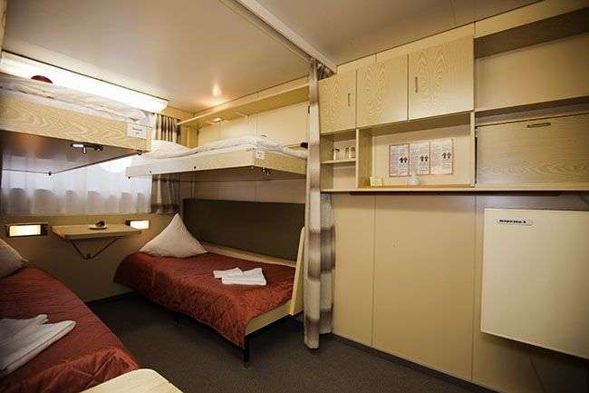 Для комфортного размещения (от 1 до 4 человек) гостям предлагаются каюты различных категорий: 10 одноместных кают, 128 двухместных одноярусных кают, 6 четырехместных двухъярусных кают.