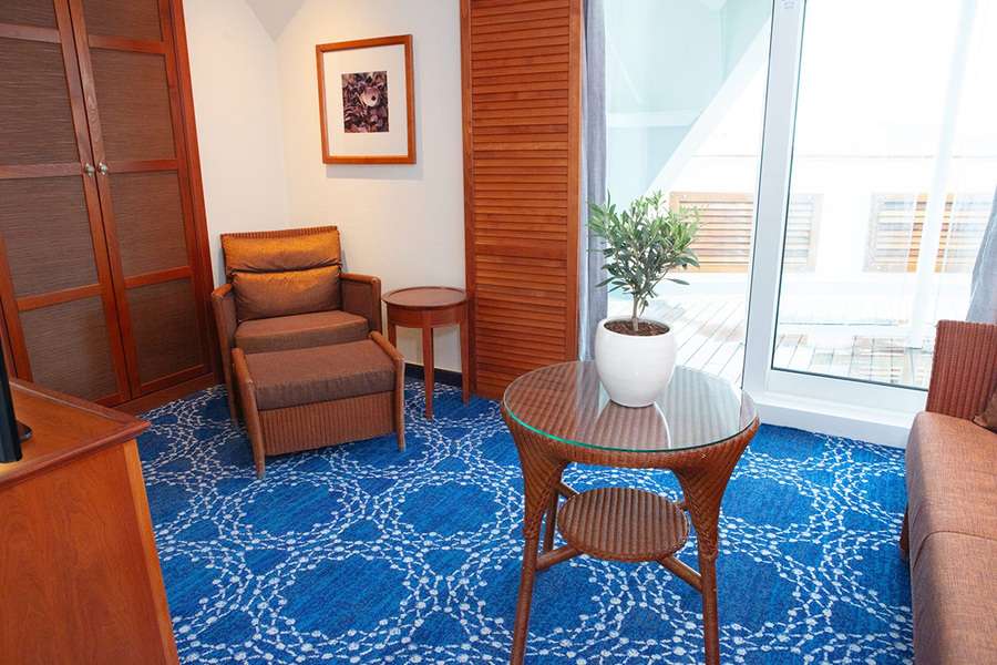 Сьют с балконом Junior Dream Suite (SJA) – двухместная каюта, расположенная на 6 палубе. Площадь каюты ≈ 25 м² (включая балкон). Максимальная вместимость: 4 человека. Консьерж-сервис.