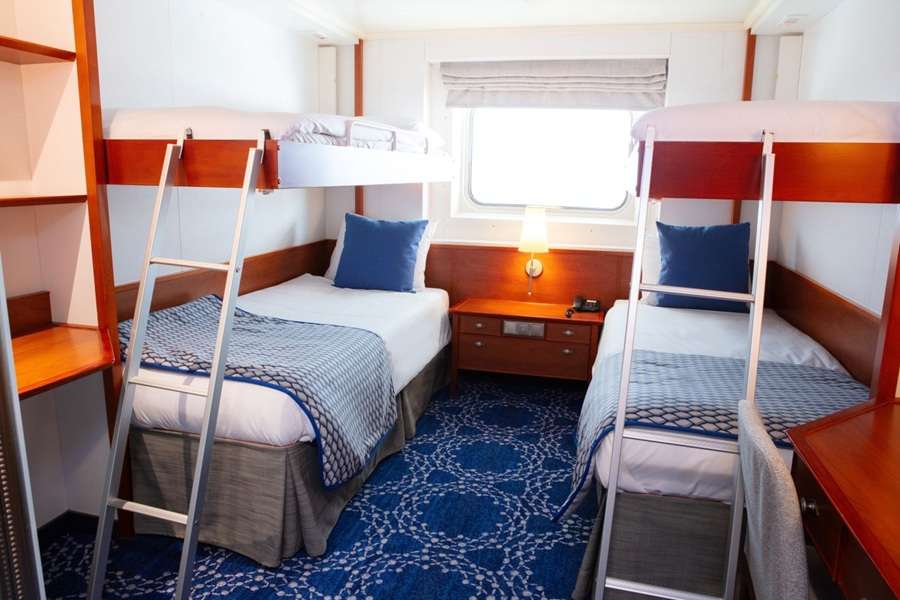 С окном Exterior Cosmos (XC) – двухместная каюта, расположенная на 4-6 палубах. Площадь каюты ≈ 17 м². Максимальная вместимость: 3 человека.